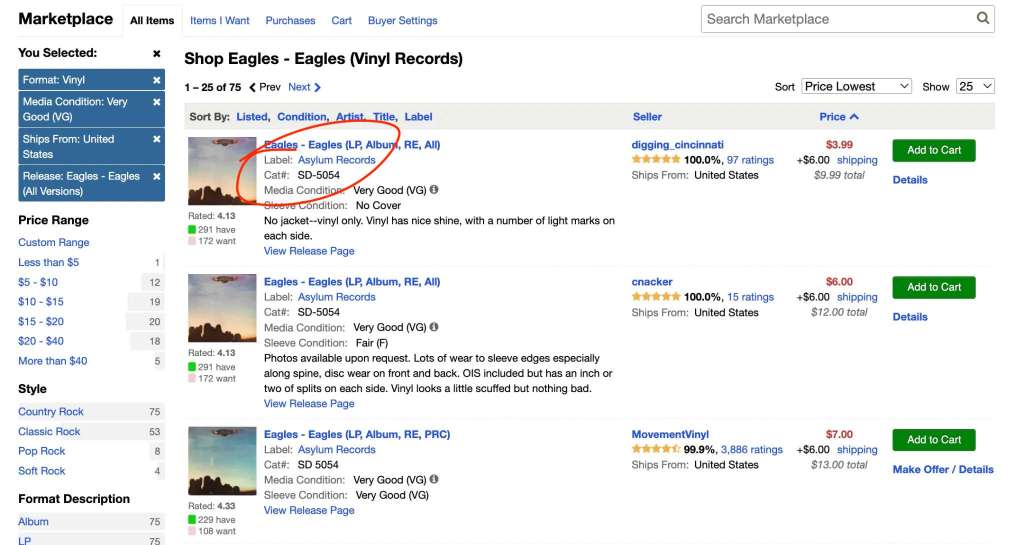The last thing you want to do once you have all the information gathered is compare the price to the actual sales history. Don’t just look at the number on the screen. Some sellers try to get more than buyers are willing to pay. Look for albums that have really sold. A sold price reflects the real value of that album.